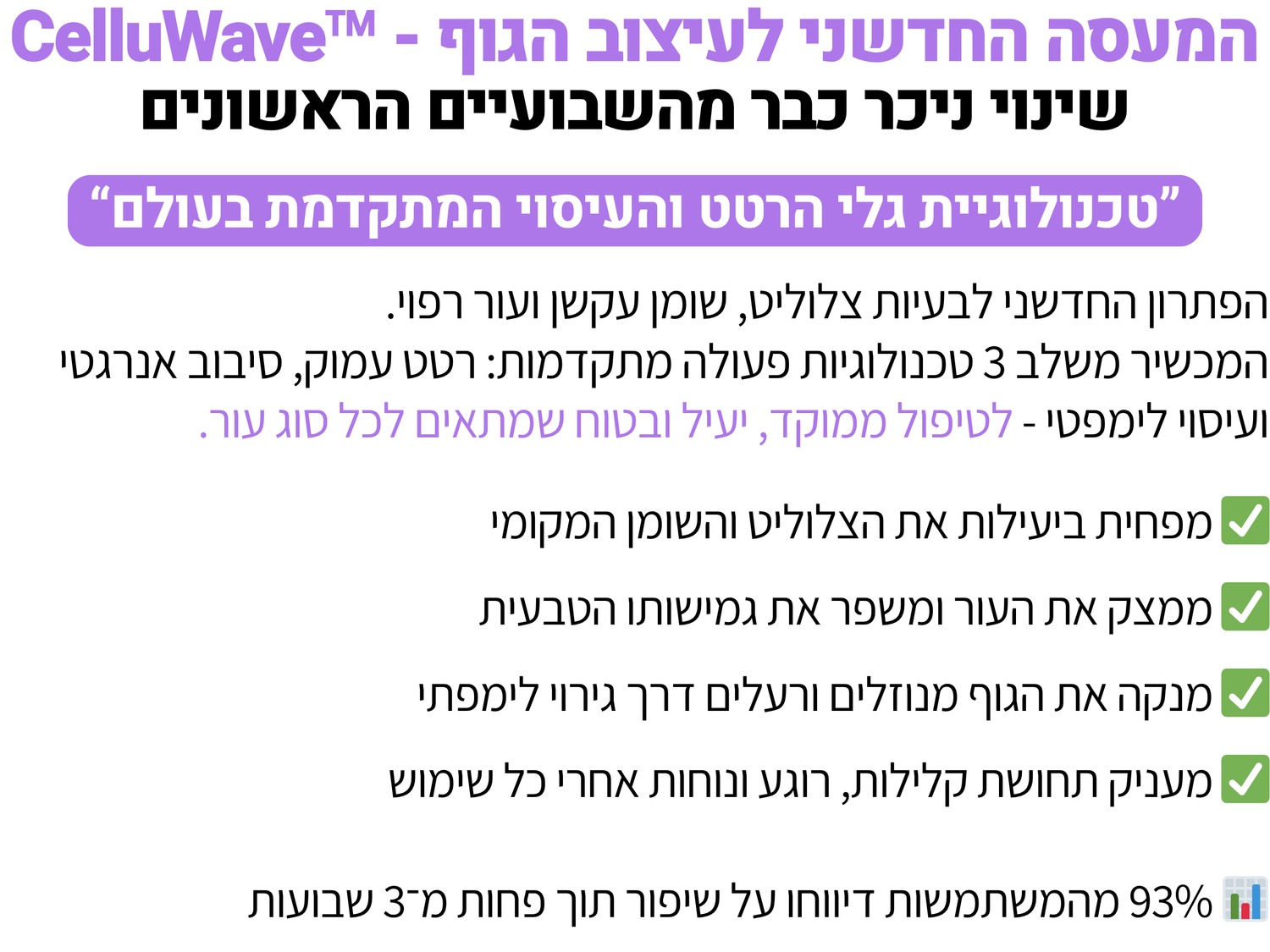 מהמשתמשות דיווחו על ירידה ניכרת במראה הצלוליט – כבר אחרי שימושים ראשונים בלבד.